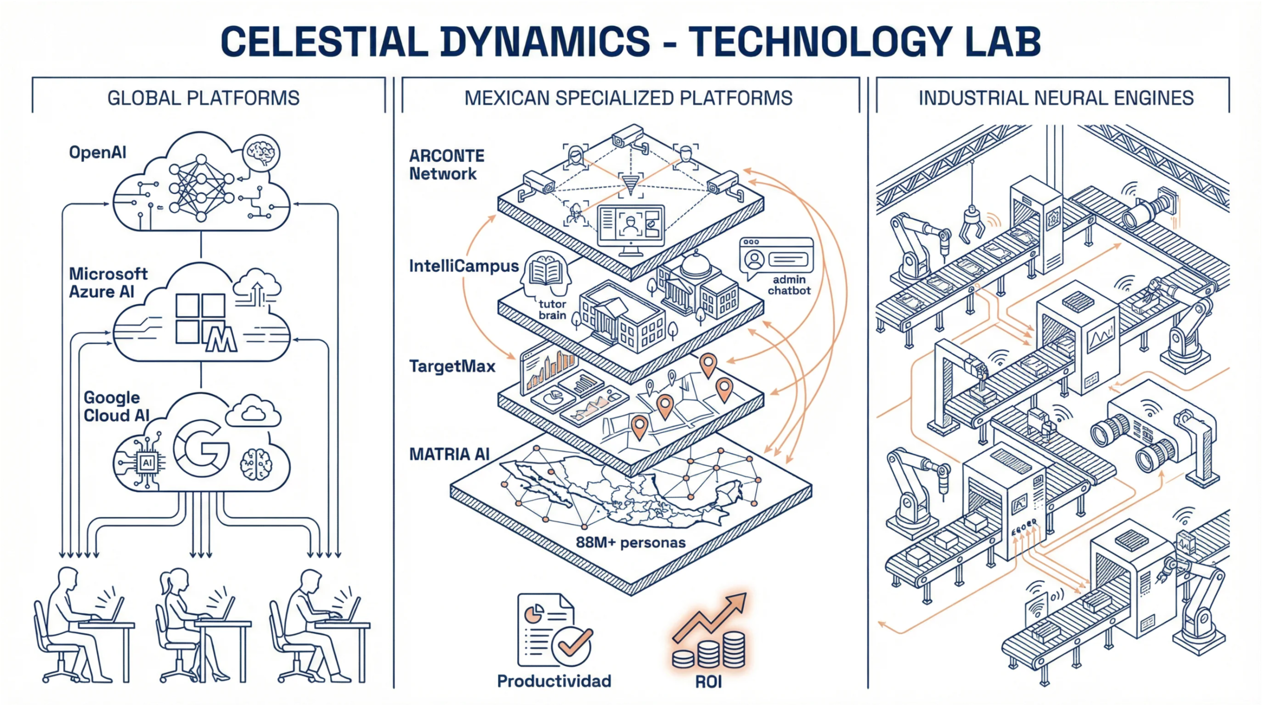 Nuestro modelo, MATRIA AI, combina más de 85 millones de gemelos digitales con datos contextuales y motores de IA entrenados en México, diseñados para ayudar a gobiernos, empresas y organizaciones a tomar decisiones más inteligentes, rápidas y con mayor impacto real.
